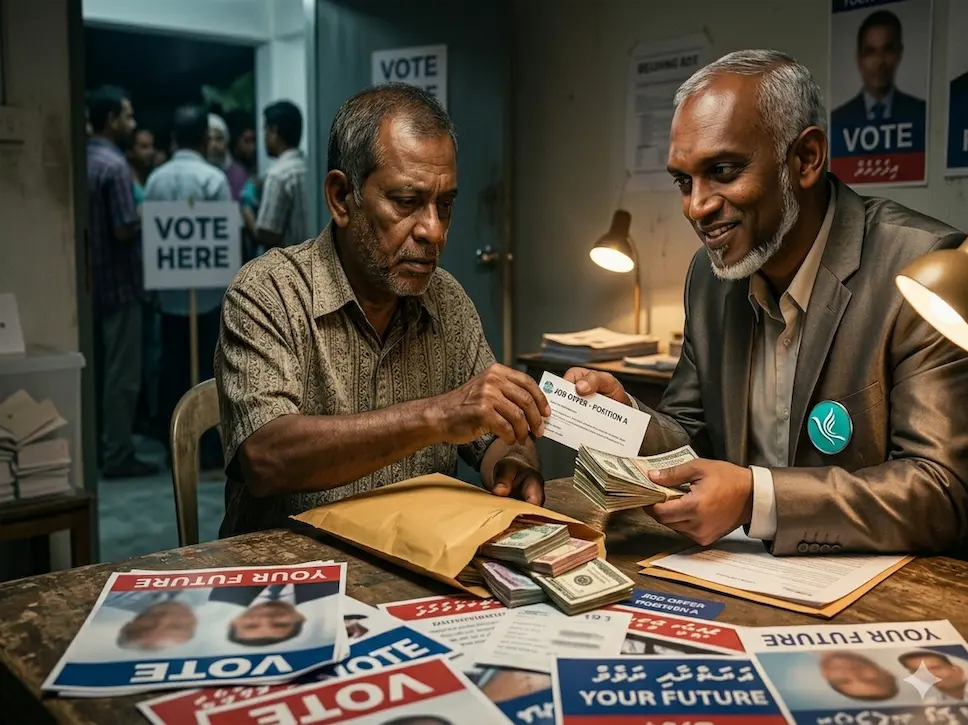 ދޭ ވަޒީފާއެއްގެ ބަދަލުގައި ވޯޓު ލައިފިނަމަ އެ ވަޒީފާއިން ލިބޭ މުސާރަ ހަލާލެއް ނުވޭ - އަނބިދަރިންނަށް އެ ކާންދެވެނީ ނަރަކައިގެ އަލިފާން ރިޕޯޓު 3 އޭޕްރީލް 2026