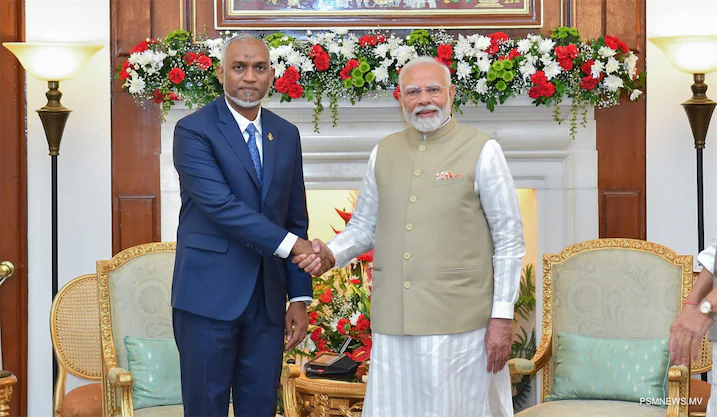 ސިޔާސީ · 7 އޮކްޓޯބަރު 2024 އިންޑިޔާއާއި އެކު ކަނޑުގެ ސަލާމަތާއި ބެހޭ ތަސައްވުރެއް ކުރިއަށް ގެންދާނެ ކަމަށް ރައީސް މުއިއްޒު ވިދާޅުވެއްޖެ އިންޑިޔާއާއި އެކު ކަނޑުގެ ސަލާމަތާއި ބެހޭ ތަސައްވުރެއް ކުރިއަށް ގެންދާނެ ކަމަށް ރައީސް މުއިއްޒު ވިދާޅުވެއްޖެ