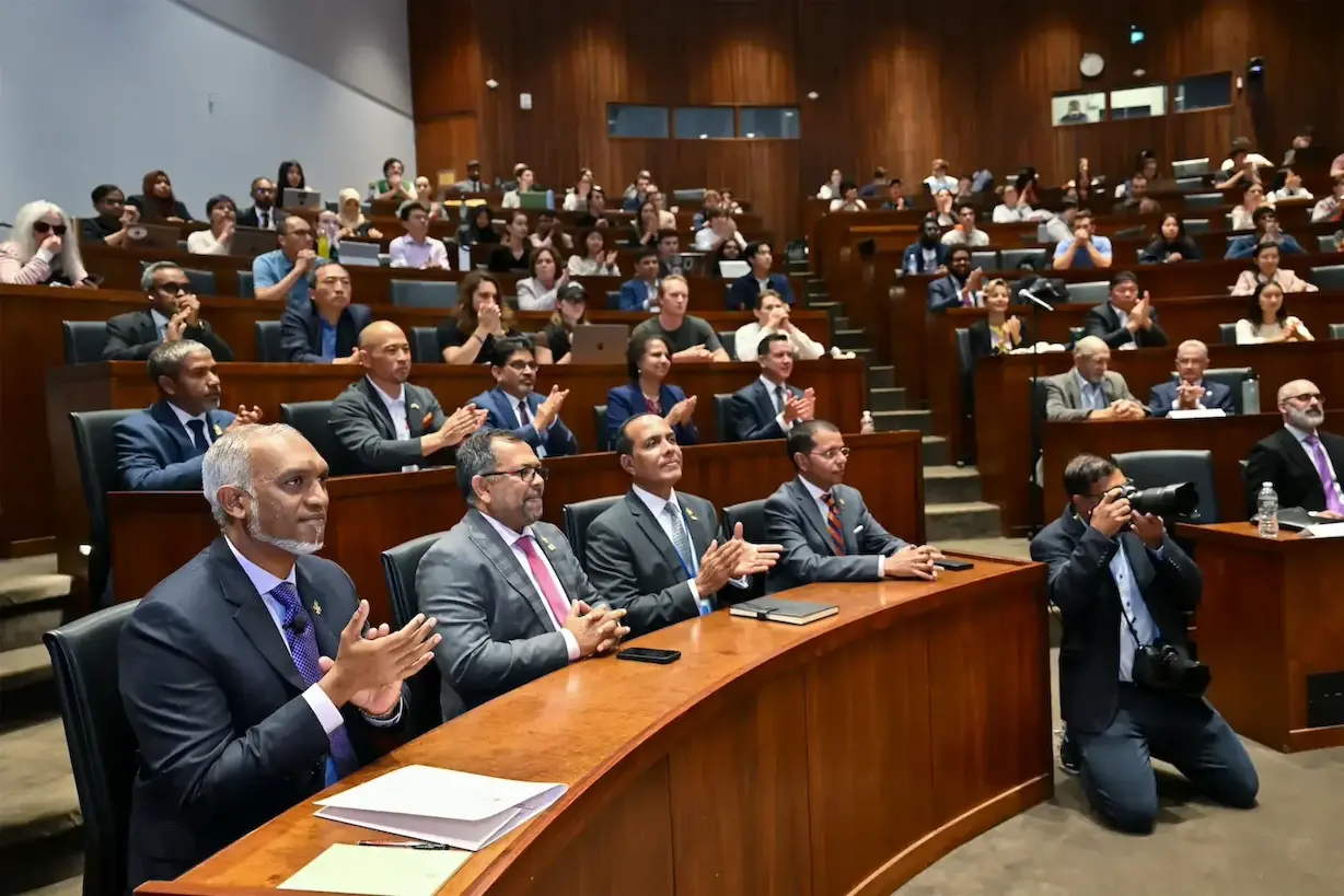 ސިޔާސީ · 27 ސެޕްޓެމްބަރު 2024 އދ. ގައި އެމެރިކާ އާއި ދެކޮޅަށް ބަހެއް ބުނަން ނުކެރުނު ފިނޑި ވެރިއެއްގެ ގޮތުގައި މުއިއްޒު ހިމެނިއްޖެ! އިޒްރޭލާއި ދެކޮޅަށް މުއިއްޒު ދެއްކި ވާހަކަ އަކީ، މުސްލިމް ނޫން ގައުމުތައް ހިމެނޭހެން އދ.ގެ %99 ގައުމުން ވެސް ދެއްކި ވާހަކަ! އދ. ގައި އެމެރިކާ އާއި ދެކޮޅަށް ބަހެއް ބުނަން ނުކެރުނު ފިނޑި ވެރިއެއްގެ ގޮތުގައި މުއިއްޒު ހިމެނިއްޖެ! އިޒްރޭލާއި ދެކޮޅަށް މުއިއްޒު ދެއްކި ވާހަކަ އަކީ، މުސްލިމް ނޫން ގައުމުތައް ހިމެނޭހެން އދ.ގެ %99 ގައުމުން ވެސް ދެއްކި ވާހަކަ!