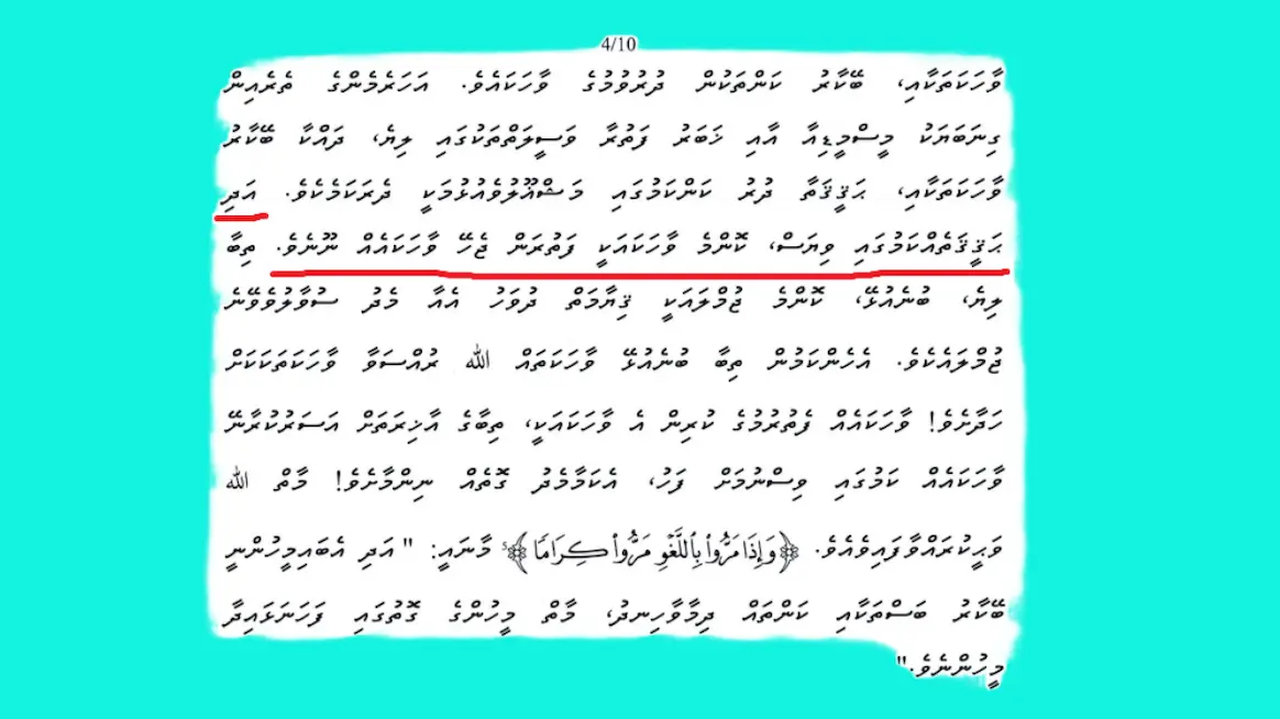 ސިޔާސީ · 19 އޭޕްރީލް 2024 ތެދު ހަޤީގަތް ހާމަ ނުކުރަން މުއިއްޒު އަންގައިގެން ހުކުރު ހުތުބާގައި ގޮވާލައިފި. ﷲ ދީނާއި ދެކޮޅު ޖާހިލިއްޔަ ޒަމާނުގެ މުޝްރިކުން ދައްކާފަދަ ނުބައި ވާހަކަތައް ހުތުބާގައި ގެނައުމަކީ ބޮޑު ވެގެންވާ މުންކާރާތެއް އަދި ފާފައެއް! ތެދު ހަޤީގަތް ހާމަ ނުކުރަން މުއިއްޒު އަންގައިގެން ހުކުރު ހުތުބާގައި ގޮވާލައިފި. ﷲ ދީނާއި ދެކޮޅު ޖާހިލިއްޔަ ޒަމާނުގެ މުޝްރިކުން ދައްކާފަދަ ނުބައި ވާހަކަތައް ހުތުބާގައި ގެނައުމަކީ ބޮޑު ވެގެންވާ މުންކާރާތެއް އަދި ފާފައެއް!