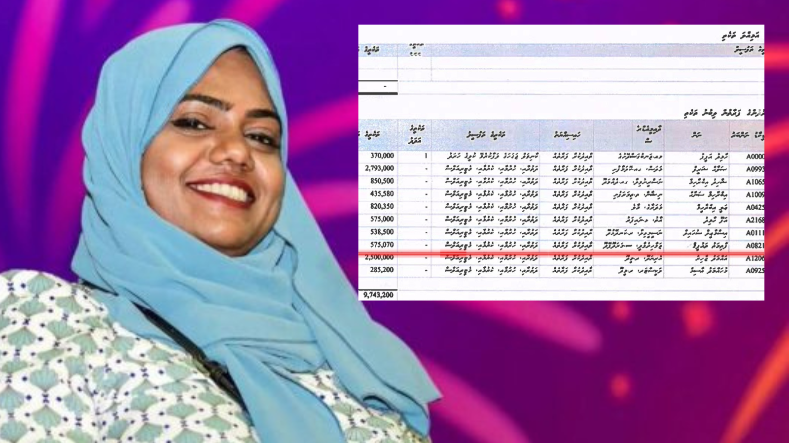 ސިޔާސީ · 18 ޑިސެމްބަރު 2023 މުއިއްޒުގެ ކެމްޕޭނަށް 5 ލައްކަ ރުފިޔާ ޚަރަދު ކޮށްދިނީތީ, ފާތިމަތު ޝަފީގަށް އެމްއެމްޕީއާރުސީގެ އެމްޑީކަން ދީފި މުއިއްޒުގެ ކެމްޕޭނަށް 5 ލައްކަ ރުފިޔާ ޚަރަދު ކޮށްދިނީތީ, ފާތިމަތު ޝަފީގަށް އެމްއެމްޕީއާރުސީގެ އެމްޑީކަން ދީފި