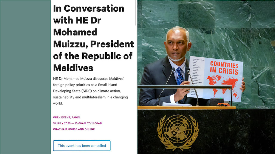 ސިޔާސީ · 15 ޖުލައި 2025 އދ. ގައި ދިން ދޮގު ތަގުރީރާއި ގުޅިގެން، ޔޫކޭގެ ތިންކްޓޭންކެއް ކަމަށްވާ ޗަޓުމް-ހައުސް އިން މުއިއްޒު އެދިގެން ބާއްވަން ހަމަޖެއްސި އިންޓަރވިއު އެންމެ ފަހުވަގުތު ކެންސަލް ކޮށްފި އދ. ގައި ދިން ދޮގު ތަގުރީރާއި ގުޅިގެން، ޔޫކޭގެ ތިންކްޓޭންކެއް ކަމަށްވާ ޗަޓުމް-ހައުސް އިން މުއިއްޒު އެދިގެން ބާއްވަން ހަމަޖެއްސި އިންޓަރވިއު އެންމެ ފަހުވަގުތު ކެންސަލް ކޮށްފި